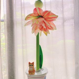 アマリリス ダンシングクイーン 少し寂しそうでしたので にゃんこに寄り添って もらいました。 ほのかな良い香りがします。😍