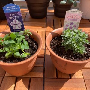 今日ホームセンターでウッドパネルを買った時に一緒に購入したお花たち。 左…るりいろ風ぐるま 右…ミリオンベルプチホイップのラベンダーシャワー(NEWカラーらしい) お花が咲くのが楽しみです♪