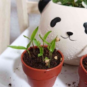 枝豆唐辛子を植え替えしました。サボテンとは違って深さのある大きな鉢が必要なんですね!
