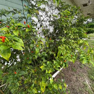 庭の片隅でたくさん育っている唐辛子💚~🌶️赤くなりきれないまま冬❄️になってしまって💦かなり辛いのかなぁ😱