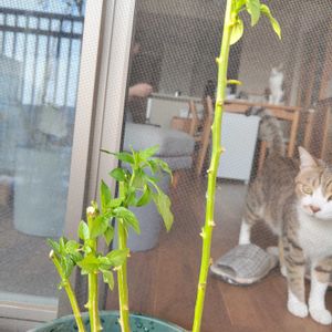 切り戻した二年目のトウガラシです。 冬越し後のトウガラシの情報はネットにほとんどなく、やり方が正しいのかわからず勘でやっています。 脇芽も悩んだ末取ることにしました。 余った上部は挿し木チャレンジしていますが...自信なしです。 状況追って報告します。