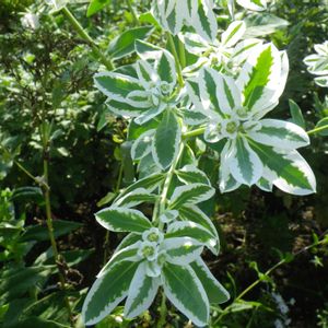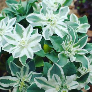 ハツユキソウ(初雪草) トウダイグサ科 トウダイグサ属 別名 ユーホルビア 花言葉『穏やかな生活』 和名は夏の花期になると 頭部の白い縁どりが 雪をかぶった様に見える 事からつけられたそうです。 蒸し暑い日が続くので 少し涼し気なお花に 癒やされました。🤍