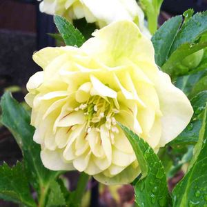 こんばんは🎵 たっぷり雨が降った 夕方の雨上がり🌂に📷️✨ 八重咲きの クリスマスローズさん💛💚 我が家にお迎えして5年目 毎年同じ感じで咲いてくれる 可愛い子です(о´∀`о)💛💚 ふんわり淡いクリーム色に 赤い差し色がスッと入って いる所がお気に入り(*^.^*) 今日も1日お疲れ様でした 明日も皆さんにとって 素敵✨な日曜日に なりますように…🍀