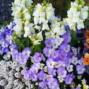 こんばんは🎵 今日も風が強くて 少し肌寒い日でした🍃 寄せ植えの 冬の間葉っぱだけだった キンギョソウさんのお花が やっと咲いてくれました🎵 ビオラさんやアリッサムさんもモリモリで鉢が見えない位に (*´∀`)💚💙 花数が増えて 乾燥してるので 朝夕の水やりが 冬に比べるとちょっと 大変ですが 綺麗に咲いてくれるので 頑張れますo(^o^)o💚💙 今日も1日お疲れ様でした 明日も皆さんにとって 素敵✨な日になりますように🍀