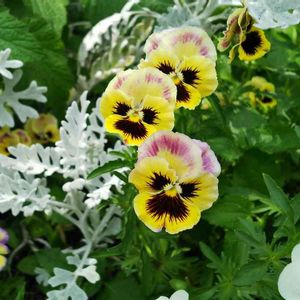 こんにちは🎵 本日2枚目のpic😄 小さな花壇に咲くパンジーさん💚💛💕 花がらを摘みながら 夏のお花といつ交代しようか迷う毎日…🤔 気温のせいか 最初の頃の濃い紫色とはお色が変化して こちらも可愛いくて💕 風邪気味で植え替える元気がないので もう少し頑張ってもらおうかな😃 どうぞよろしくお願いします🤗