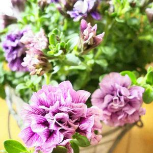 おはようございます🎵 今日は曇り空🌥️ 風もなくて気温も程よく 過ごしやすい朝です😊 昨日お迎えした 八重咲きペチュニア リトルホリデー ダブルブルーアイスさん💚💜 小輪で八重咲きのお花が とっても可愛いくて😍💕💕💕 ペチュニアさん💚💜 毎年上手く育てられないけど、 今年はモリモリになってくれるといいなぁ😃 今日も皆さんにとって 素敵✨な1日になりますように…🍀