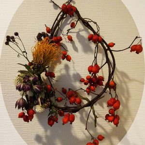 知り合いの方からいただいたリース🤗💞 いい感じです😆 こういうのも作りたいなぁ❤️ この赤い実は何でしょうか❓️😅 回答、ありがとうございます😃 鈴バラでした🌹🌹🌹