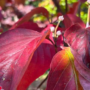 紅葉を愛でに、なのですが いちばん印象に残った彩色が このミズキの一種 コルヌス“クーサヴィーナス” とのこと ヤマボウシとコルヌス(サンゴミズキ)との交配種だとか。 普通のハナミズキやヤマボウシよりもひとまわり大きな葉が紅く色づいて目を惹きます。