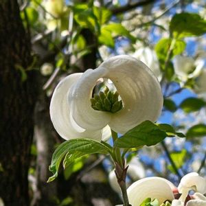 ★ハナミズキ(花水木)★ ミズキ科の落葉高木 花期:4月下旬〜5月初旬 北米原産 花弁の様に見える部分は葉が変形した白色(~桃色)の総苞(装飾花)。本当の花は中央部にある黄緑色の小塊。小花が10~20輪ほど集まって球状になる。(①枚目はまだ蕾) かなりの大木😯 そして①枚目、頭の上での “”サランへポーズ“”が可愛い🫶 2025.4.15 上野不忍池にて📱