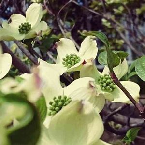 ハナミズキ ミズキ科 春の花がどんどん咲きだしてきてる~💕😃 ピンクのも可愛いけど、 グリーンがかった白も素敵✨
