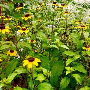 おはようございます! 昨日の散歩道では、花壇にお花たちがひしめいて咲いていました💐 黄色いのは、ルドベキアかなぁ?