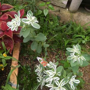 ❄初雪草❄ 雪のように真っ白な色で縁取られた葉🌱 涼しげです🍃 小さなお花もアップしてみると可愛いです。