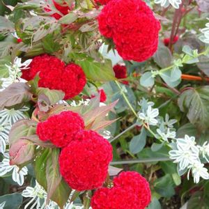 こんばんは😃🌃✨ 今日も本当に暑かったですね😵 🌞青空も❗良いですけど☀️😵💦暑いのはね😆 ハツユキソウの白い花🌸と真っ赤なケイトウの花🌸