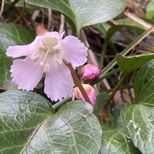 山形市野草園。 オオイワウチワ。 ふりふりの感じが可愛らしいピンク色のお花。