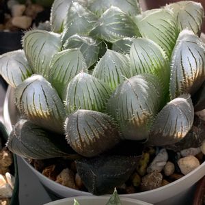 年末が近づいて忙しくなってきました😞 帰ってきてハオルチア眺めて癒されてます 最初、葉に皺があったので水不足かと思ったら、この子の葉の特徴だったようです😅 全部の葉にうっすら皺みたいなのが入っていて面白い 透けてる緑色もキレイ😊