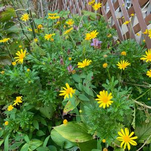 マーガレットコスモスが花盛り。庭の花が黄色ばかりになってます。