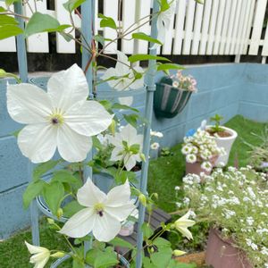 クレマチス咲いてきました😆🙌 秋植えして初咲きです🤍 実はこのクレマチス、近所のホームセンターで300円の見切れ品でした✨あの時の私ありがとう🥰 花壇がお花いっぱいで庭にずっといたいです🌼
