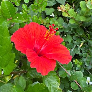 最初のハイビスカスが咲きました。これは挿し芽で増やしたものです。