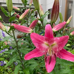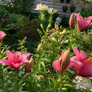 ピンク色のスカシユリが咲きました。ちゃんと同じ色で順番に咲くのが面白いね