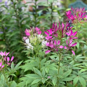 種まきしたクレオメが大きく開花しました。小さい苗は小さいまま、大きい苗は大きい花をつけるんですね!