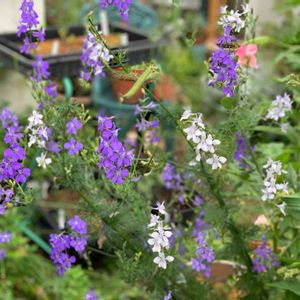 種を取り始めた株もあるチドリソウだけどまだまだ咲いてるのはスイートピーに絡まれてる