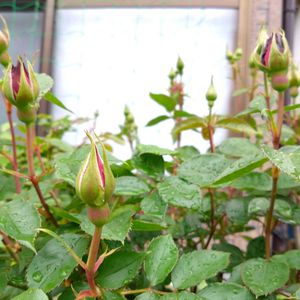ライラのサイドシュート🌹 2週間位放置してたらこんなに房咲きに😂💦 新苗だし難しい子らしいし、夏越しできるかハラハラしてたけど、意外と無事に越せそうかな😇 秋はいっぱい咲いてね❤️☺️