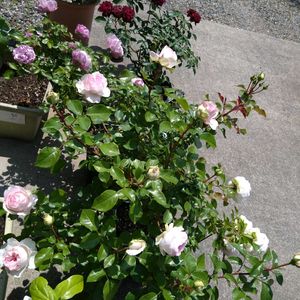 我が家の玄関先😚ロクサーヌは1番全盛期🌹 シャドウオブザムーンはまだちょこちょこ咲いて、ライラは終わりかけ🌸 バラにハマって2〜3年の初心者だけど、今年はうまくいったかな?🌹♡こんな感じで秋も来春も咲き誇って欲しいな〜♡╰(⸝⸝⸝´꒳`⸝⸝⸝)╯