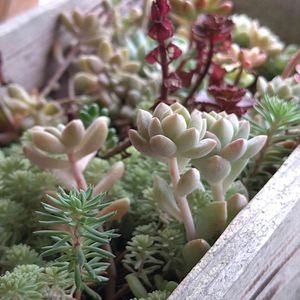 今朝の外置きセダム達🌱 屋根のある、雪の入り込まない所に居る子たちです。 今年はやはり暖かいみたいで不織布掛けたりしなくても元気にしてくれています✨