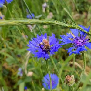 こんばんは🌃 今日のお花💐【ヤグルマギク】 間に合うかな? お出かけ先の武田神社の裏手の空き地に沢山咲いていました💜 🐝が無心に蜜を集めていました