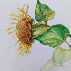 お早うございます。 ☀/☁最高気温😉31℃予想と日中、夏日が戻りそうな8/16(土)朝です。 昨夜は寝た後に途中覚醒を繰り返し、少し絵の写真を見ながら過ごしました。 ①20〇〇年夏「向日葵の横顔」 ②「赤いハナミズキ」 ③「蔓日々草」 ④「褐色のペリカン」 以上4点。
