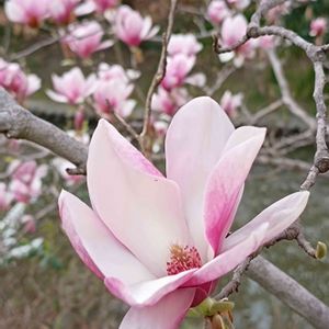 モクレン・アレキサンデリーナ(モクレン科モクレン属) ピンク色のモクレン、素敵です。 たくさん咲いてると見応えありますね。 モクレン(木蓮)は早春に鮮やかな紫や濃いピンクの花を咲かせるモクレン科の落葉樹です。その花が蓮を連想させることから「木蓮」と書かれるようになりました。 一般的にモクレン(木蓮)というと、紫色の木蓮(モクレン)をさすことが多く、樹高が10~20mになる白いモクレンはハクモクレンと呼ばれています。花びらの枚数はモクレン(木蓮)は6枚、ハクモクレンは9枚の違いがあります。 🏷 ピンクワールドへようこそ 🏷 19日はピンクの日