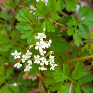 オウレン ちっちゃなお花 葉っぱはニンジンの葉に似てますね