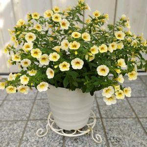 連投です(^^) 黄色繋がりで💛 *ミリオンベル・アンティークレモン* サントリーさんのカリブラコアです。 お迎え時かなり徒長していたので思い切りカット✂️ やっとこんもりと咲いてくれました♪ 原色系は少し苦手ですが、こんな優しい黄色なら大歓迎です♡ ⋱⚘⋰ ⋱⚘⋰ ⋱⚘⋰ ⋱⚘⋰ ⋱⚘⋰