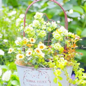 こんばんは🌛 最近の暖かさであらゆるお花の成長スピードがぐんぐん上がってますε=ε=٩(๑・∀・)۶ こちらは花手毬〜絢〜あかいろと、八重咲きペチュニア(左下にちらっと蕾を蓄え中のミリオンベルアンティークオレンジ)の寄せ植えです🥰 和をイメージした色合いの寄せ植え、元気に咲いてくれて嬉しい限りです☺️ ミリオンベルも頑張れ〜💪✨ 一眼レフで撮ってみたシリーズ 花手毬〜絢〜 あかいろ 八重咲きペチュニア ミリオンベル アンティークレモン 寄せ植え