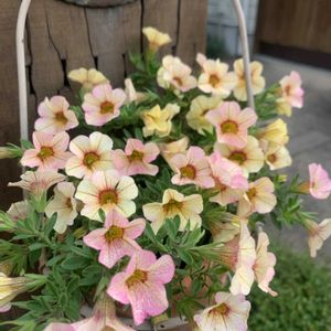 カリブラコア ミリオンベル アンティークレモン ピンクと黄色のグラデーションがとっても綺麗です 水切れからの回復も早くこの夏1番 丈夫かも。日々草より虫もつかない。