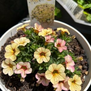 引き続き💠サントリーフラワーズです💠 こちらも3月14日に植え付けて1ヶ月半経ちました😉 新色🩵 ミリオンベル🔔アンティークレモン🍋 株がキュッとまとまってたので摘芯していません😄 はじめはほんのりピンク色でしたが咲き進んでくると 黄色っぽくアンティークな感じが素敵です😍 このアンティークレモンは私が好きだった ピーチマーブル🍑によく似ています😌 でも今年からピーチマーブル🍑がなくなって しまいました🥲ショックです😨 ミリオンベル🔔アンティークオレンジ🍊 こちらも摘芯していませんが、 した方が良かったなぁ〜って感じです😅 私はお花が早く見たいのであまり摘芯しないかなぁ🤭 こちらは薄黄色に綺麗なオレンジのスジが入り 満開になると鮮やかになりそうです🍊