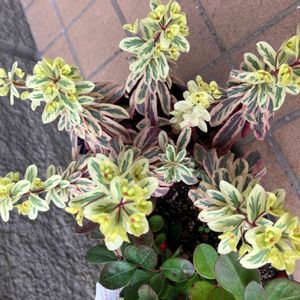 ユーフォルビア・フロステッドフレーム トウダイグサ科 半常緑耐寒性宿根草 開花時期/初夏 *管理方法 初夏に花も咲きますが斑入り葉が特徴です。 季節の紅葉が見事です。 水はけ、風通しが良く、日なたから半日陰の所で育てる。 切り戻しで姿を整える事が出来る。