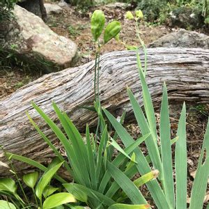 オレンジ色の花を楽しませてくれたヒオウギ。 現在は、実をつけています。 葉っぱがまだ青々として元気いっぱいで素敵。