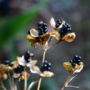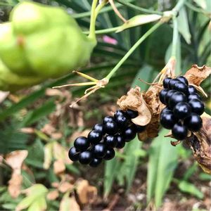 旅と花の風景🏍🚶♂️ そばに打ち捨てられたような、お婆ちゃんの薬草園ってのがありました。 漆黒の実が残ってました。ヒオウギの果実いわゆる射干玉、ぬばたまですね😍