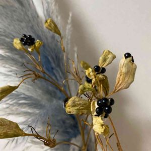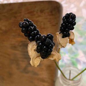 実家の草花束ねました ブルーベリー ヨウシュヤマゴボウ ヒオウギの実 食用菊 ナチュラル・田舎感🌳🍃