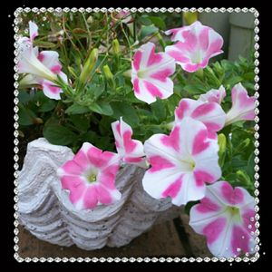 おはようございます😊 今日も良い天気☀️ サフィニア桃色ハート💓 名前の通りハート模様のお花がとてもかわいい🎶🤗