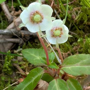 ウメガサソウ 🌱ツツジ科 ウメガサソウ属 名前の由来 : 花の形が梅の花に似ておいて、下向きに咲く様子を笠に見立てたことから ✽草状の常緑小低木で高さ5〜10cm ✽葉は質が硬く厚く光沢があり、楕円形〜披針形で先が尖り基部まで鋸歯縁で数個ずつ輪生状につく ✽花はふつう1個つき、径1cmほどで花冠は5個の花弁状 ✽花柱はほとんど無く、無毛の子房上に柱頭が乗る ✽花は下向きに咲き、徐々に横向きになり、果実の頃には上向きになる 高さが無く、俯いているので撮り難い花ですよね! そんな中、咲き進んで横向きになってた花が有りましたが、上手く撮れてませんね😆