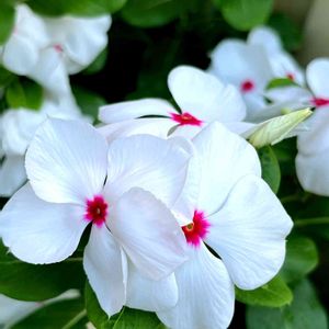 ニチニチソウ ミルキーポッポ 🤍 花びらがうっすらピンクになってきて、夏の今だけピンクっぽいカラーなんかな? (៸៸᳐>⩊<៸៸᳐)~♡