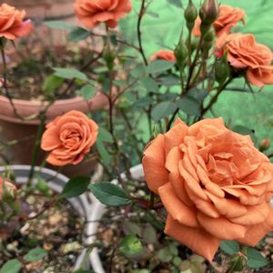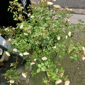 今日は暑かったですね 屋上のバラ 名前が可愛い テディベアと毎年植え替えている オリエンタルリリーはどこまで伸びるのかな
