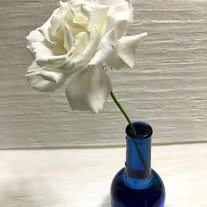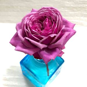 青いバラ。蛍光灯のような白色の光でこの色が出る感じです。香りも素晴らしくてお気に入り。