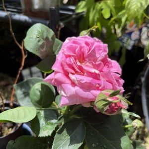 鉢植えのバラ✨ 大きいピンクで今2つお花を咲かせました。 植木鉢に変えて、栄養あげないと🌹 今朝、見たら、お花つんだ近くから新芽がたくさん出ていました✨
