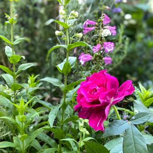 イントゥリーグ 二番花も鮮やかなワインレッドが健在で、良い香りを漂わせています🌹✨ ペンステモンも漸く咲き出しました♡