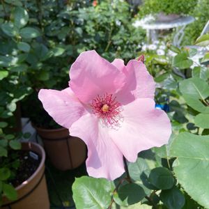 今年挿し木したバラ、お名前がチョットお聞きしたけど忘れてしまいました。 又挿し木した方にお聞きしないと。 小さな枝だけだったのに背丈も伸びて、こんなに立派なお花咲きましたよ❣️ 葉も元気ツヤツヤです。