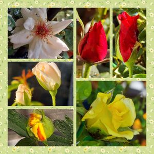 こんにちは😊 今日のバラ🌹たち✩.*˚ 可愛い蕾たちと ↖ジャクリーヌ・デュ・プレ ↘ミニバラ 🏷金曜日の蕾たち 参加させて下さい(⁎ᴗ͈ˬᴗ͈⁎)✨