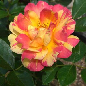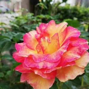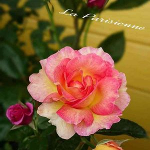 フレンチローズ ラ・パリジェンヌ オレンジと黄色のグラデーションが特徴のようですが、ピンク色に見えますね…